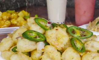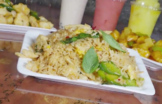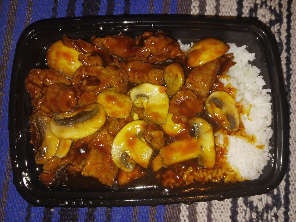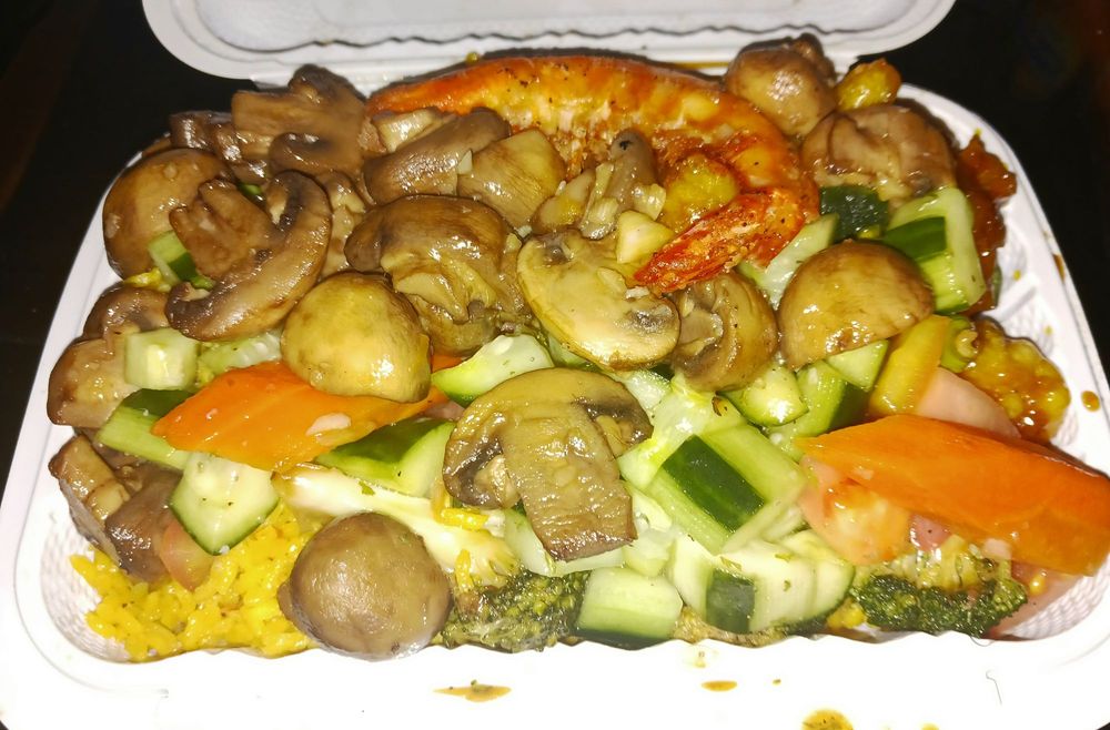 Zucchini, onion and mushroom in a special sauce with either fried Japanese noodles or rice.